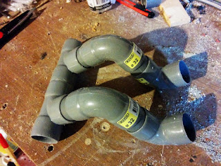 Quelques coudes, un peu de tuyau, un peu de colle. Même pas 10€. Le principe du collimateur de collimateur est de permettre de faire une rotation précise du laser pour pouvoir évaluer son décentrage et l’ajuster. C’est vraiment tout bête.